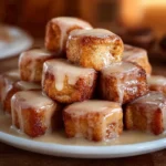 Delightful bite-sized morsels combining the flavors of cinnamon rolls and classic French toast, topped with sweet icing.